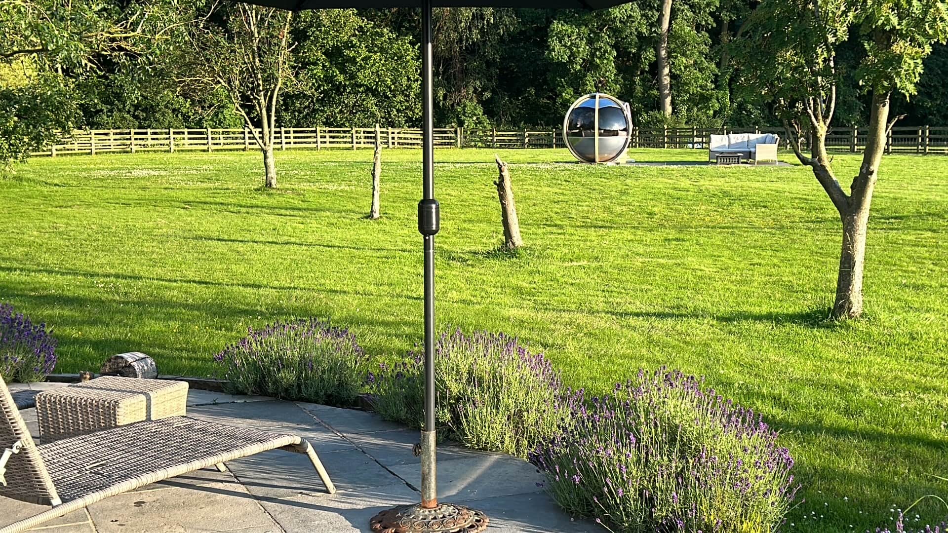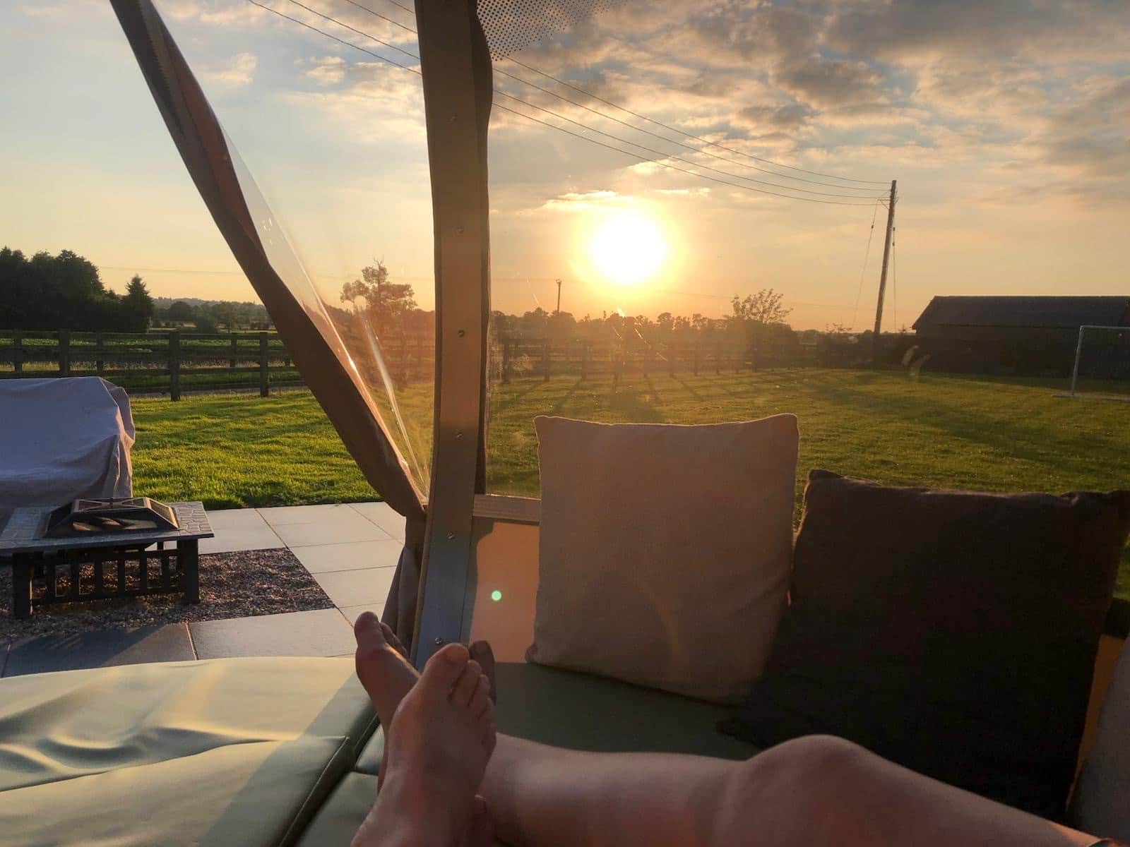 This year we have added a garden dome to our outdoor space, sited to look westwards to get the most amazing sunsets. It's a lovely space to use even if its wet outside, it still feels cosy with blankets in the winter.
